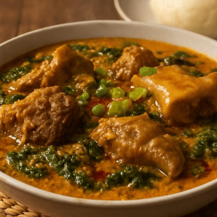 Popular dishes include Cassava Leaves, Fried Spinach, and Jollof Rice With Goat.